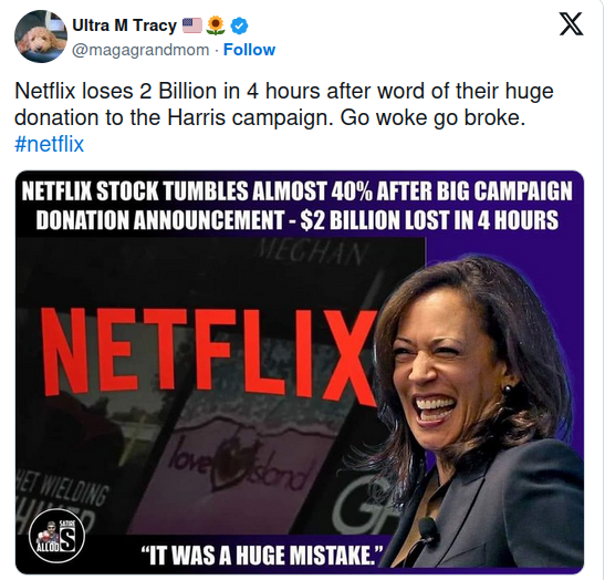 Did Netflix Stock Drop 40% After Donating To Kamala Harris?