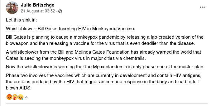 Facebook Post Claims Bill Gates Is Inserting HIV Into Mpox Vaccine