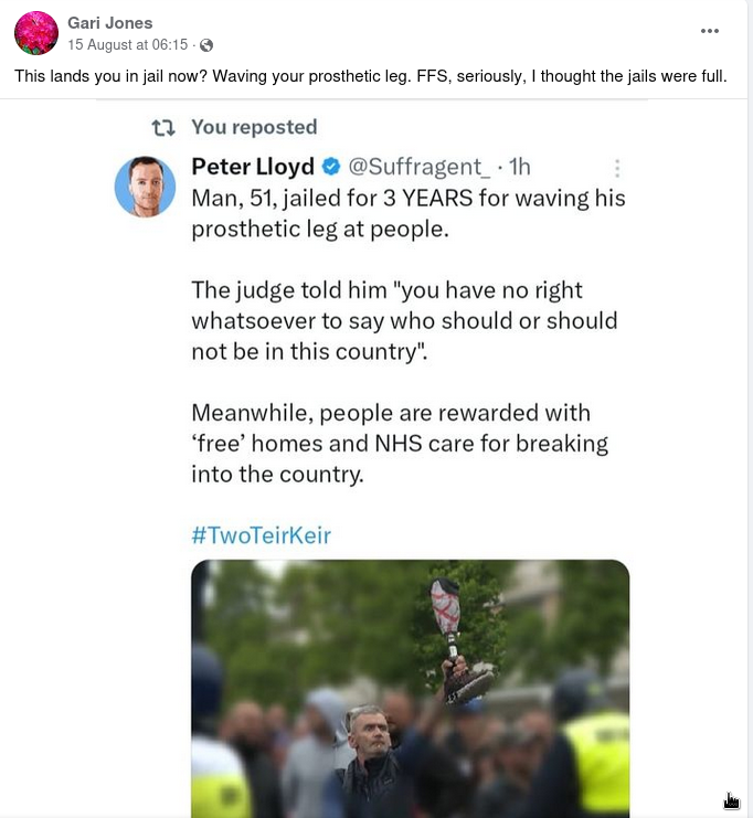 Facebook Post Makes False Claim About Why UK Protester Was Jailed
