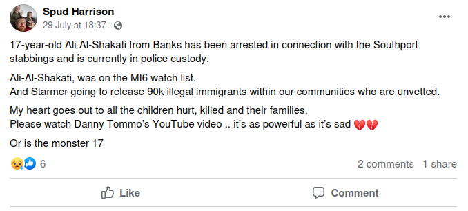 Facebook Post Misidentifies Suspect Who Allegedly Committed Southport, UK Stabbings