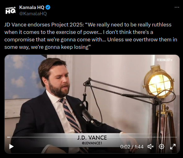 Harris Campaign Claims Video Shows JD Vance Endorsing Project 2025