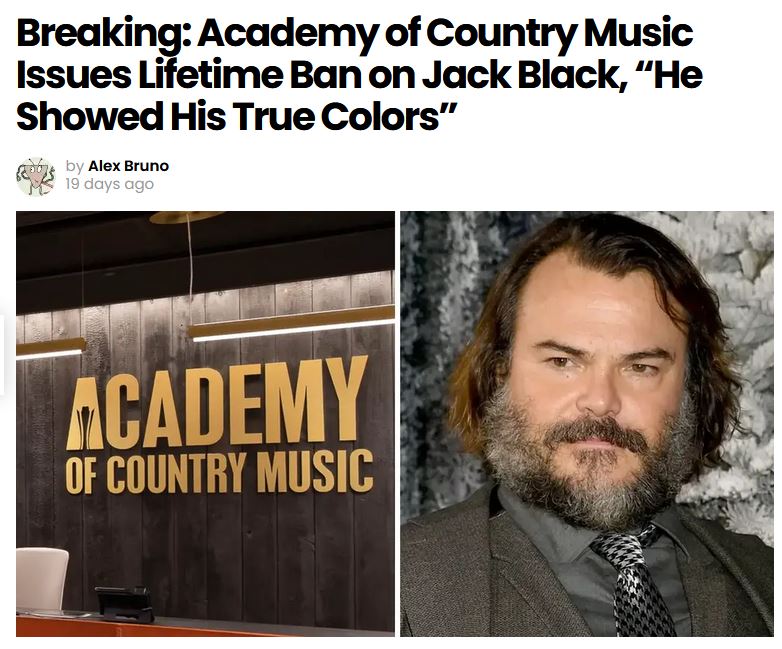 Did the Academy of Country Music place a lifetime ban on entertainer Jack Black after his bandmate made comments about the assassination attempt...