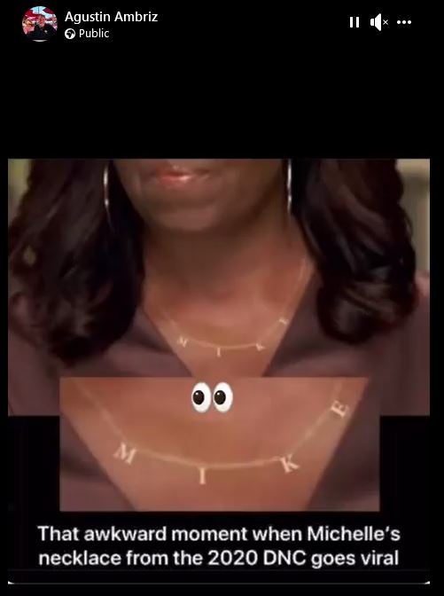 Did Michelle Obama wear a gold necklace with the letters "MIKE" in 2020? No, that's not true: The former first lady's gold necklace had the four...