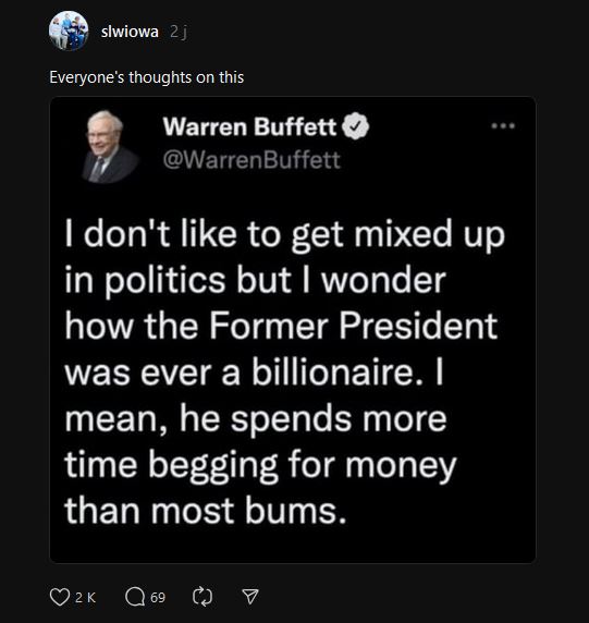 Warren Buffett Did NOT Tweet That Trump 'Spends More Time Begging For Money Than Most Bums' -- That Was Recycled Meme