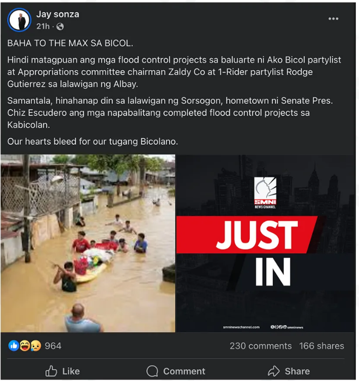 2022 photo misrepresented as flood in Bicol due to Kristine