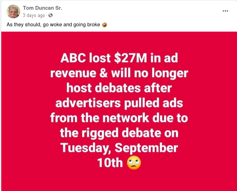 A rumor that ABC lost $27 million in advertising revenue following the Sept. 10, 2024, U.S. presidential debate was circulating online in the days...