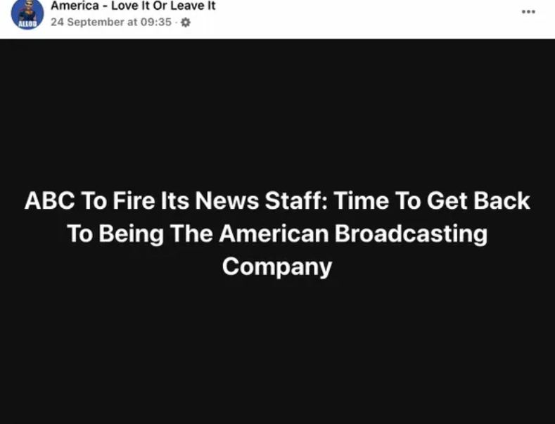 A rumor that the network television channel will fire its news staff circulated online in September 2024. For example, the Facebook page America...