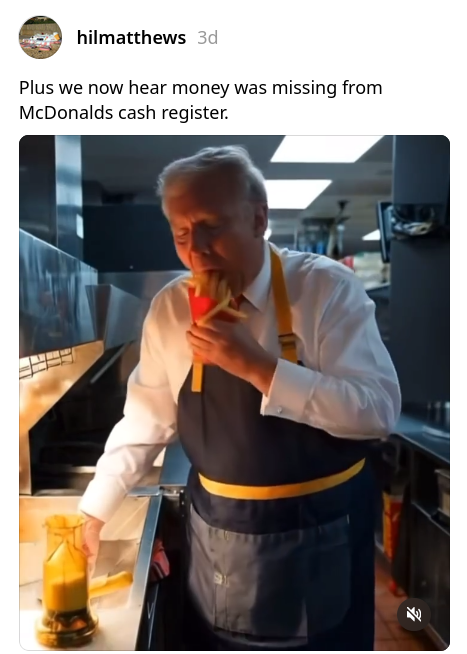 An AI-generated video of Republican Donald Trump gorging on McDonald’s french fries has been shared online as authentic...