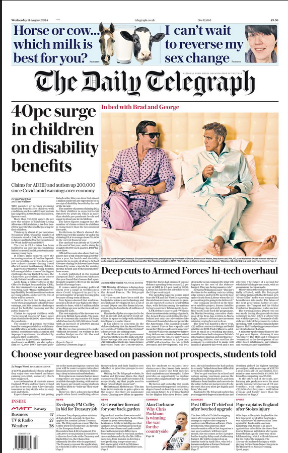 In the subheading of its front page story on 14 August, the Telegraph stated that Disability Living Allowance (DLA) “claims for ADHD and autism [are]