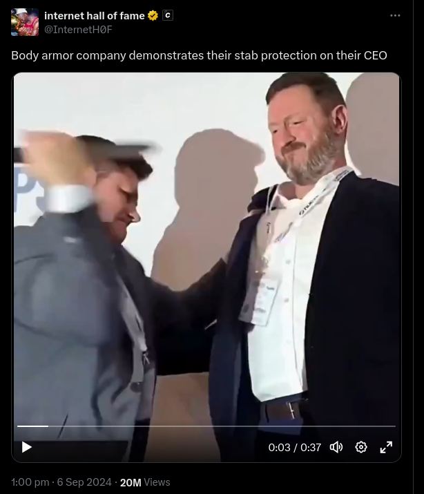 On Sept. 6, 2024, a video was shared to X purportedly showing a body armor company demonstrating its "stab protection" vest on the organization's...