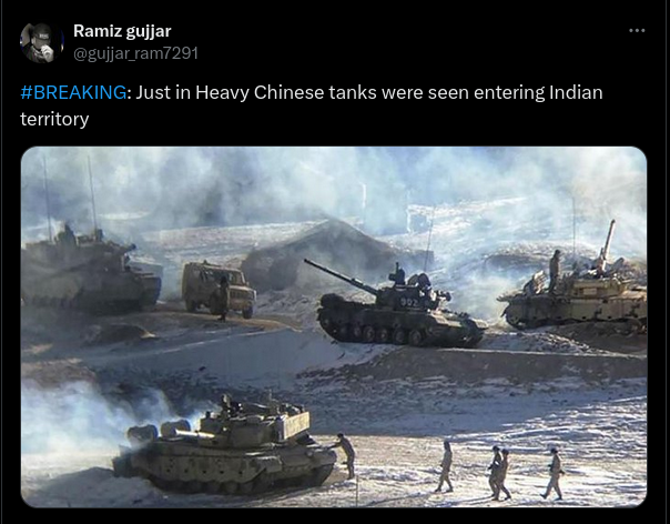 A photo of tanks and soldiers pulling out of the contested high-altitude border lands of India's Ladakh region has resurfaced in social media posts...