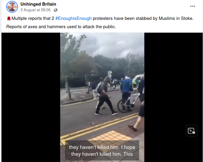 Claim two protesters were ‘stabbed by Muslims in Stoke’ is false