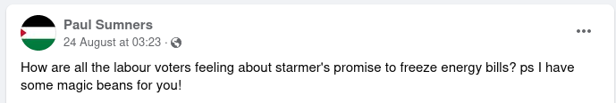 Claims Labour pledged to freeze energy bills appears to refer to old policy