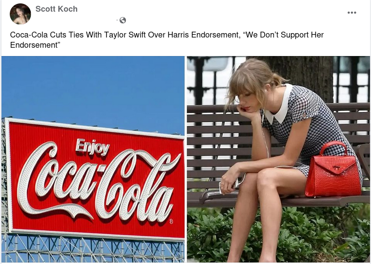 Coca-Cola did not cut ties with Taylor Swift following Harris endorsement