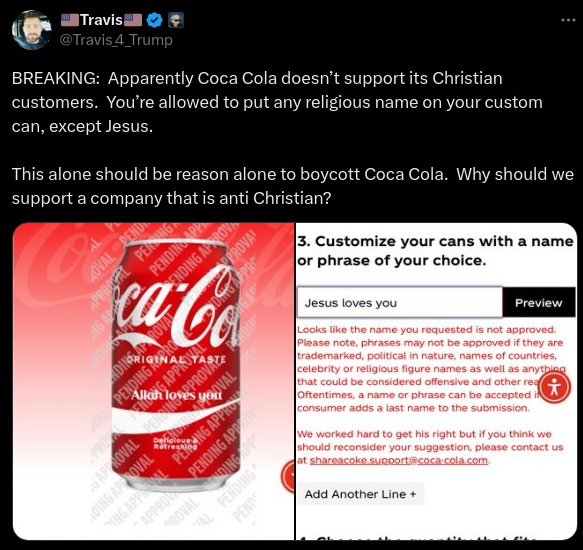 Coca-Cola Does NOT Allow 'Allah Loves You' Or 'Jesus Loves You' On Custom Cans