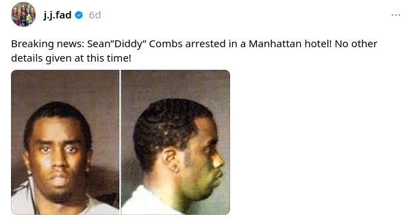Contrary To Claim, Threads Post Does Not Show Recent Mugshot Of P. Diddy