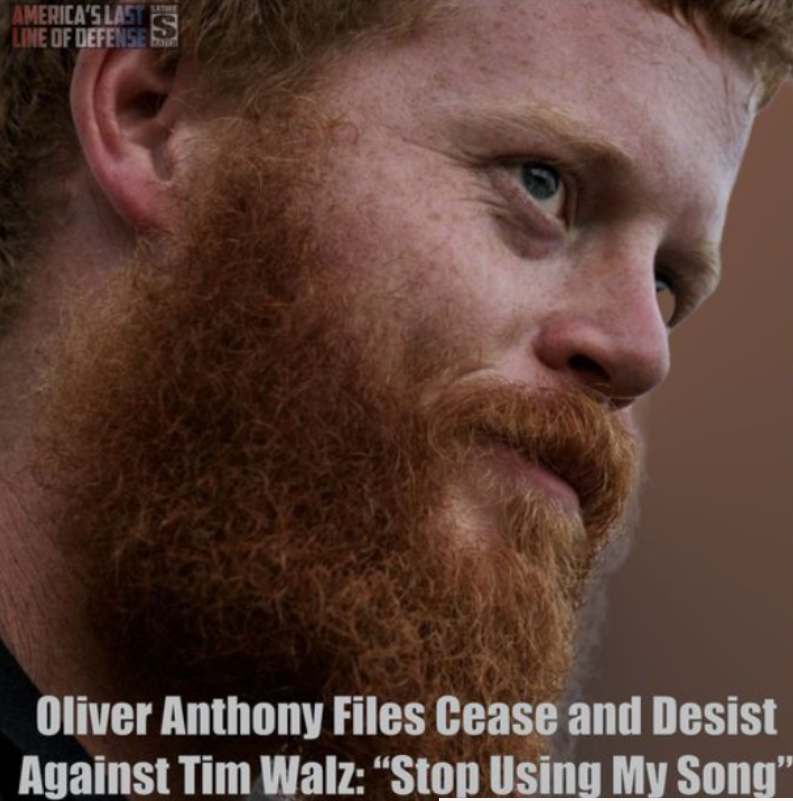 Did American country folk singer Oliver Anthony file a cease-and-desist order against Tim Walz for using one of Anthony's songs? No, that's not...