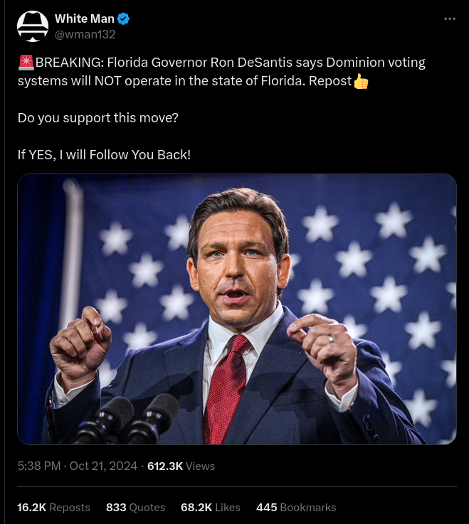 DeSantis Did NOT Block Dominion Voting Systems In Florida; It Will Operate In 18 Counties In 2024