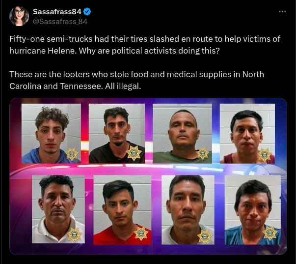Did 8 'Illegal' Immigrants Slash Tires on 51 Semitrucks Carrying Hurricane Relief Supplies?