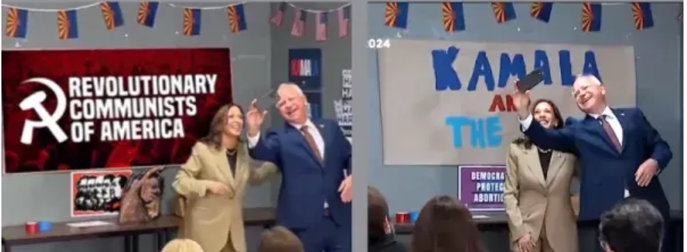 Did Harris and Walz take a selfie next to a communist poster? No, video is altered