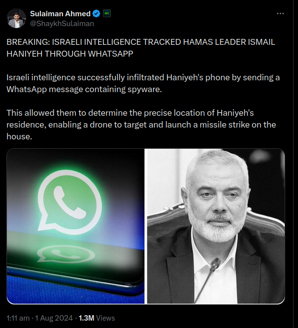 Did Israel Track Hamas Leader Ismail Haniyeh Using WhatsApp?