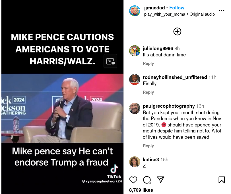 Did Mike Pence endorse Kamala Harris and Tim Walz? No, this video was edited