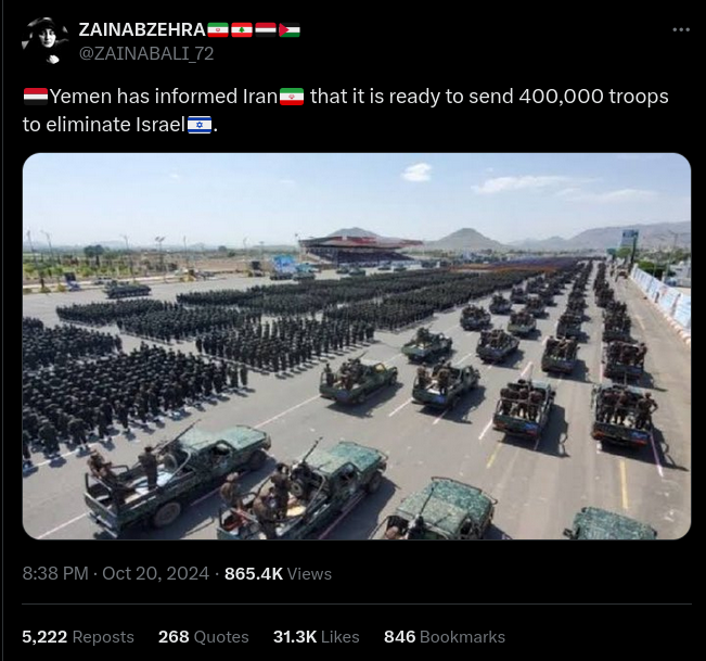 Did Yemen Offer to Send 400,000 Troops to Eliminate Israel on Behalf of Iran?