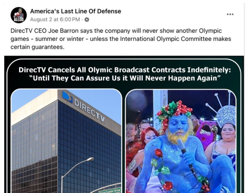 On Aug. 2, 2024, the Facebook account America's Last Line of Defense posted a meme claiming that television provider DirecTV had canceled all...