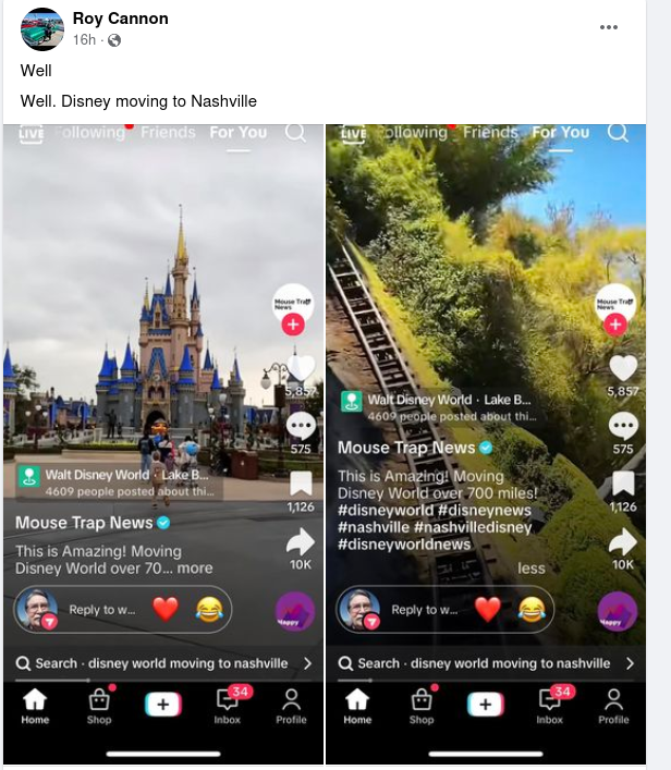 A rumor that Walt Disney World Resort was moving to Nashville, Tennessee, circulated online in September 2024. According to the claim, the move was...