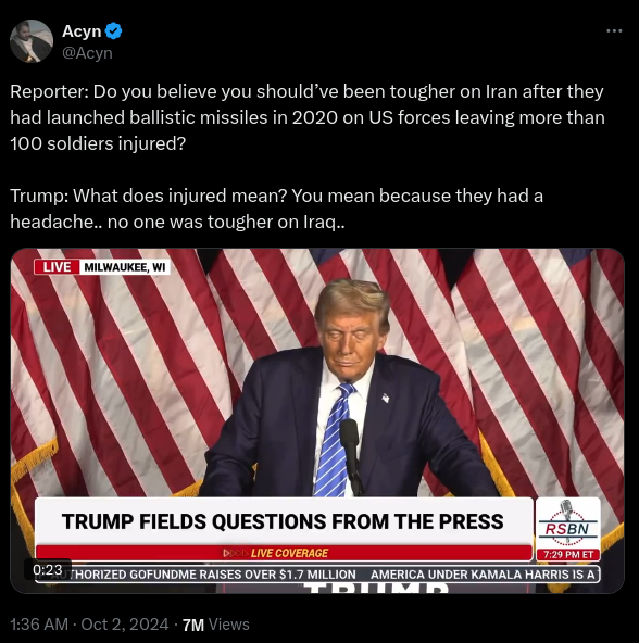 Former President Donald Trump claimed that Iranian missiles “never hit the fort” and suggested troops only suffered a “headache” when Iran launched...