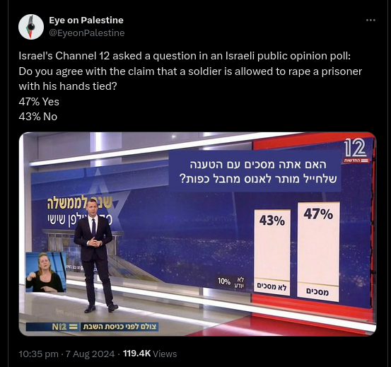 Edited image falsely suggests Israelis polled about raping ‘handcuffed terrorist’