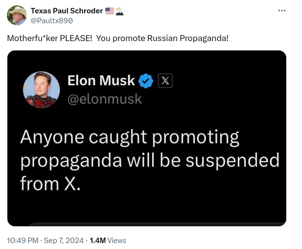 Elon Musk Did NOT Tweet 'Anyone Caught Promoting Propaganda Will Be Suspended from X'