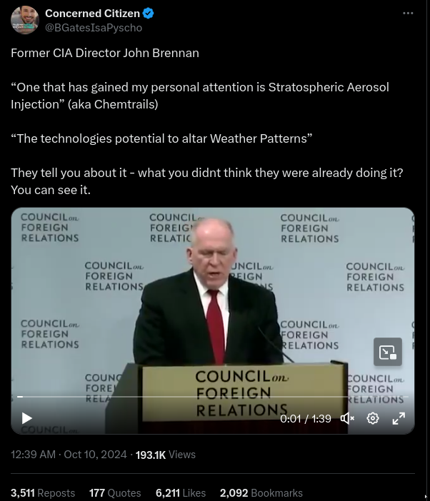 Did former CIA Director John Brennan reveal that the U.S. government uses Stratospheric Aerosol Injection, a hypothetical geoengineering technology...