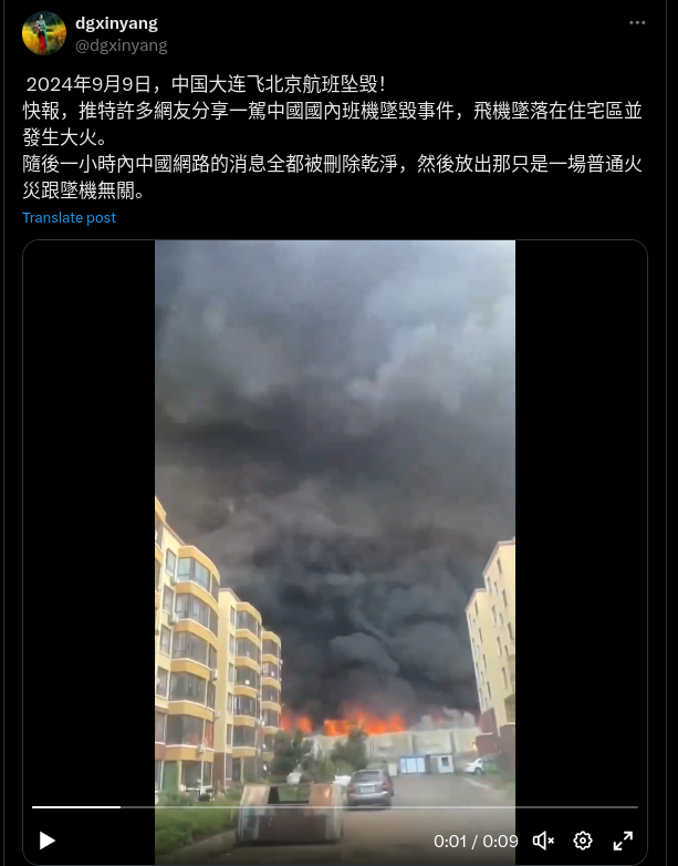 Fabricated China 'plane crash' posts share unrelated fire video
