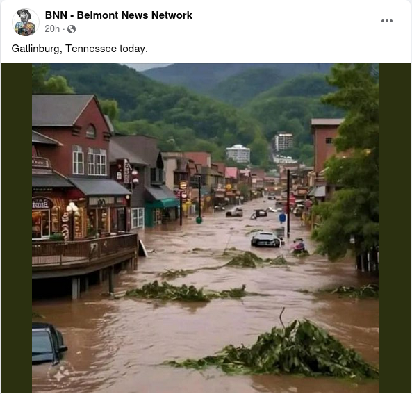 Hurricane Helene wreaked havoc in Tennessee, where rivers swelled and deadly floodwaters swept people away. But a purported image of Gatlinburg...
