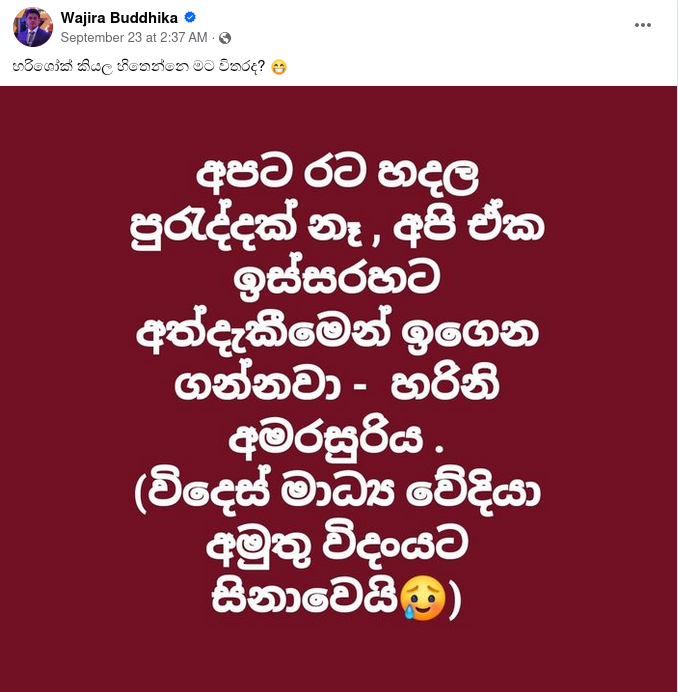 Sri Lanka's new Prime Minister Harini Amarasuriya was misquoted in Facebook posts that falsely claimed she said she did not have any experience in...