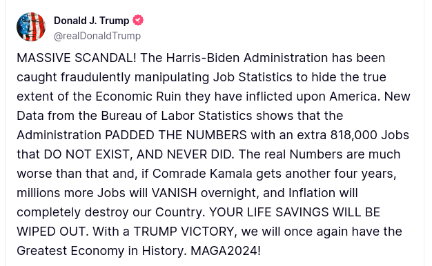 Fact-Checking Trump’s Claim That The Biden-Harris Administration Purportedly Manipulated Job Statistics
