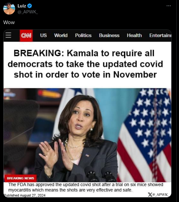 Fake CNN headline says all Democrats need latest COVID shot to vote