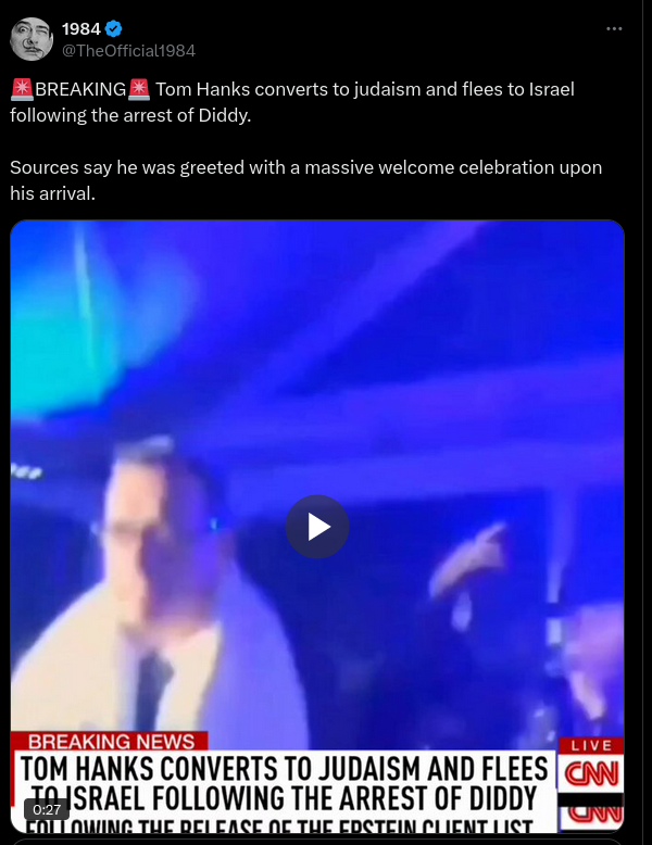 Fake CNN headline says Tom Hanks fled to Israel after Diddy arrest