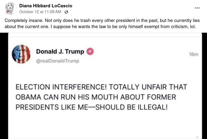 Republican presidential candidate Donald Trump did not post on social media that it should be illegal for former U.S. President Barack Obama to...