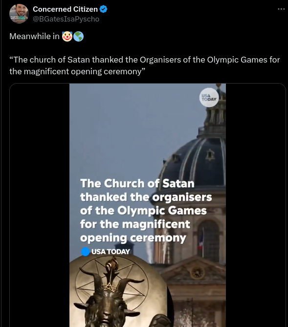 A video attributed to USA Today and falsely reporting that the Church of Satan thanked 2024 Olympics organizers for a controversial tableau in the...