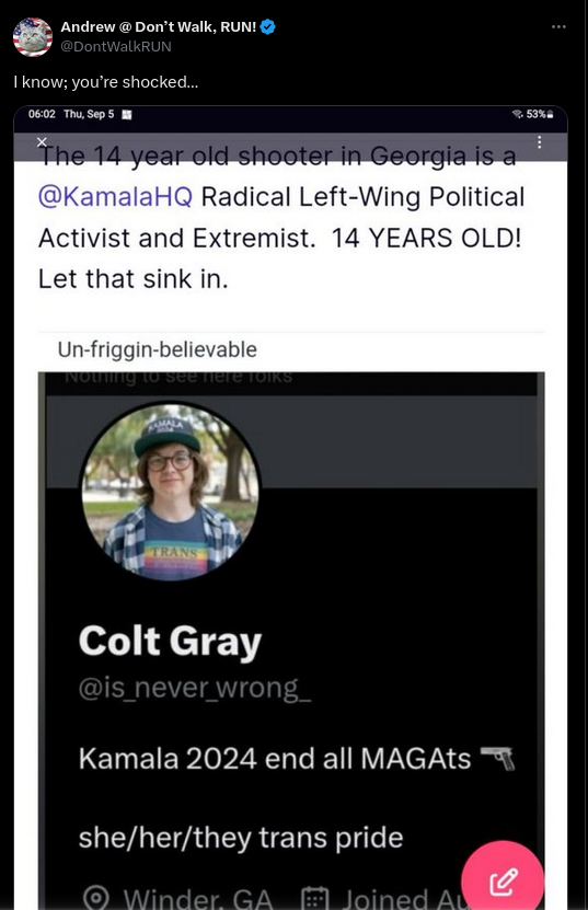 Soon after authorities released the name of the shooter suspected of killing four and wounding nine at a high school in the US state of Georgia...
