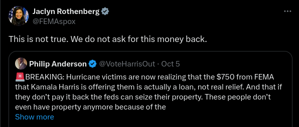 FEMA’s $750 emergency aid to Hurricane Helene victims not a loan