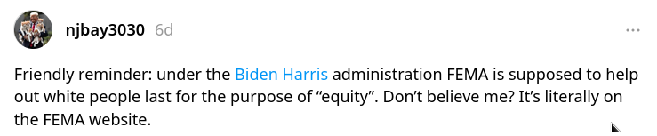FEMA’s website doesn’t say it must help white people last