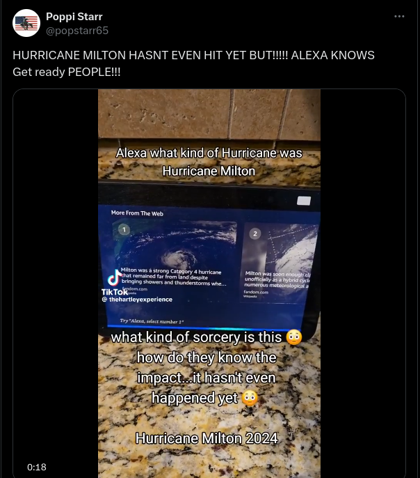 Fictitious Hurricane Milton article shared by Amazon Alexa