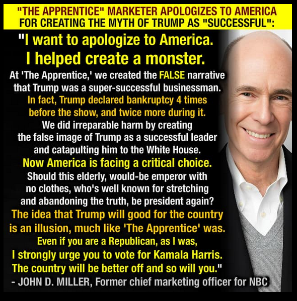 Former 'Apprentice' Exec Apologized for 'Creating Monster' in Trump, Endorsed Harris?
