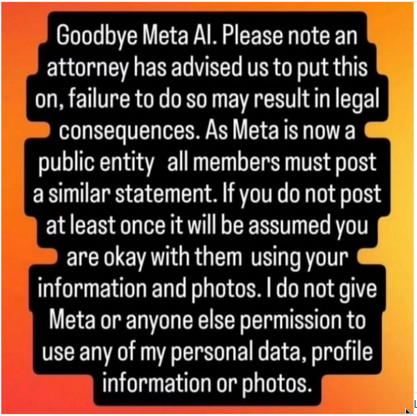 By posting a statement on Facebook or Instagram that begins with "Goodbye Meta AI," users are blocking the company from scraping their data to...