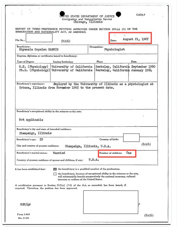Harris' Mom Lied on Immigration Form So She's Ineligible To Be President?