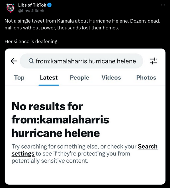 Kamala Harris spoke about Hurricane Helene on her official Vice President X account, contrary to online posts saying that she had remained silent...