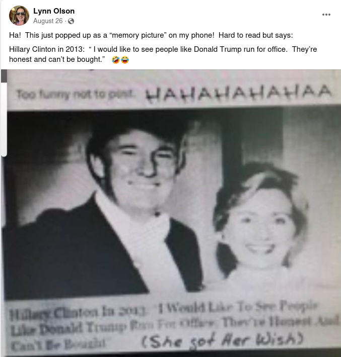 Hillary Clinton quote about Donald Trump running for office is fabricated